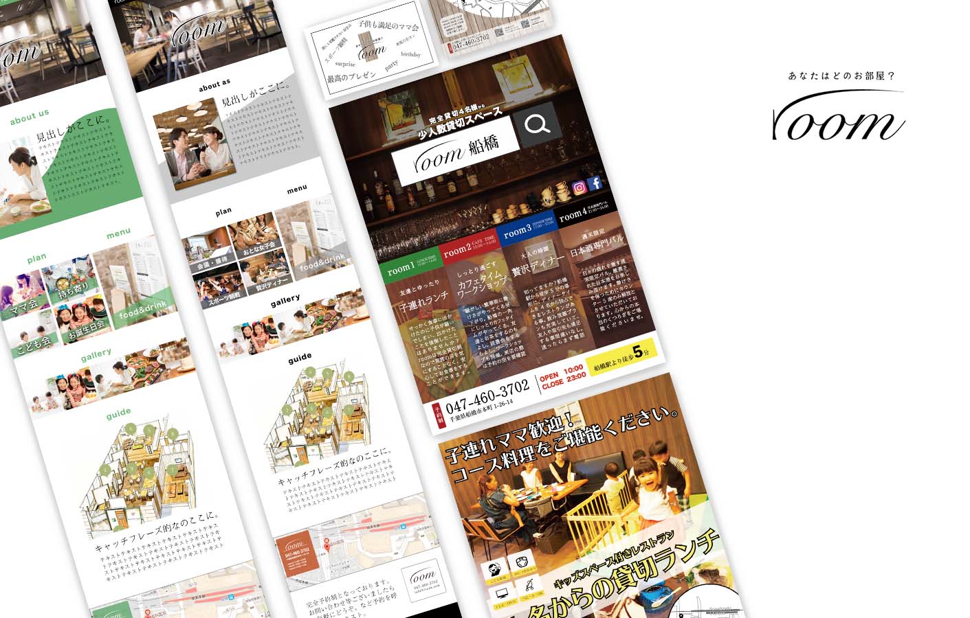 ターゲット層が「子連れママ」から「ビジネス利用」まで幅広く、コンセプトが曖昧になりがち。 ・駅から遠く、人通りが少ないため、認知度向上が必要。 そこで、WEBサイトや販促物では「room1〜room3」にゾーニングし、それぞれのターゲットに適したデザインと訴求メッセージを設定。子連れ向けのランチタイムと、大人のためのディナータイムで、異なる魅力を明確に打ち出しました。